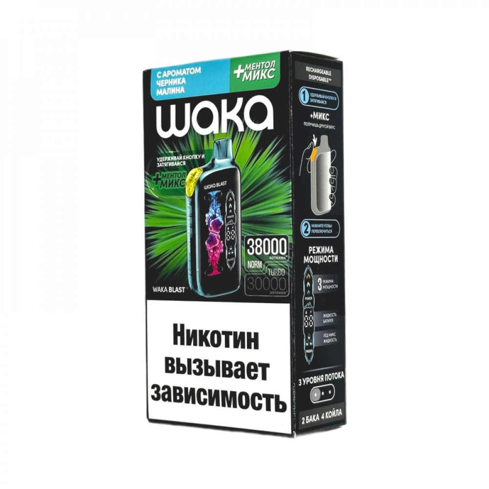 WAKA BLAST 38000 Hard - Черника малина + ментол микс - купить в Омске
